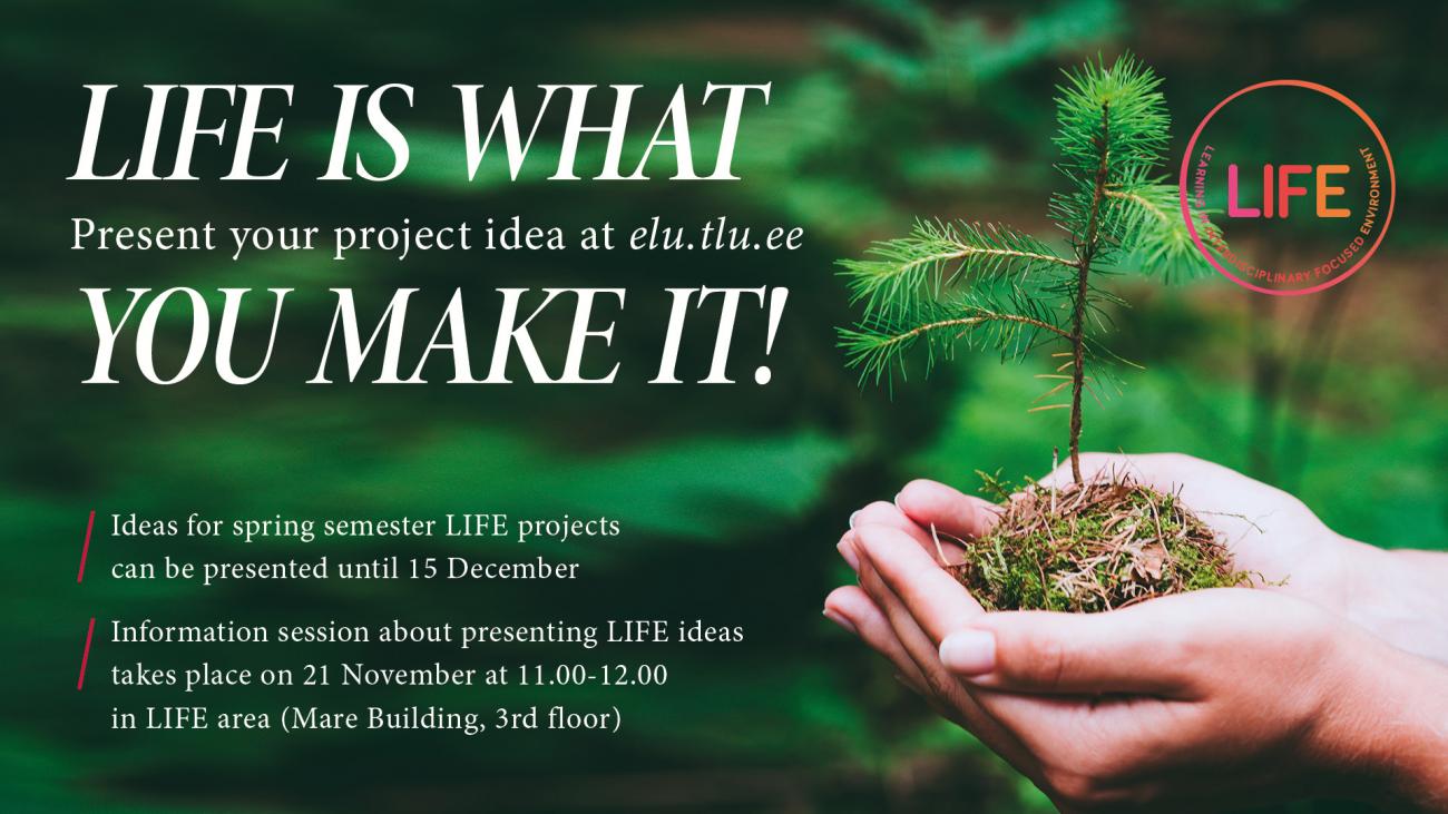 NB! If you cannot participate in the information session but you have questions, you can turn to LIFE coordinators by email elu@tlu.ee.