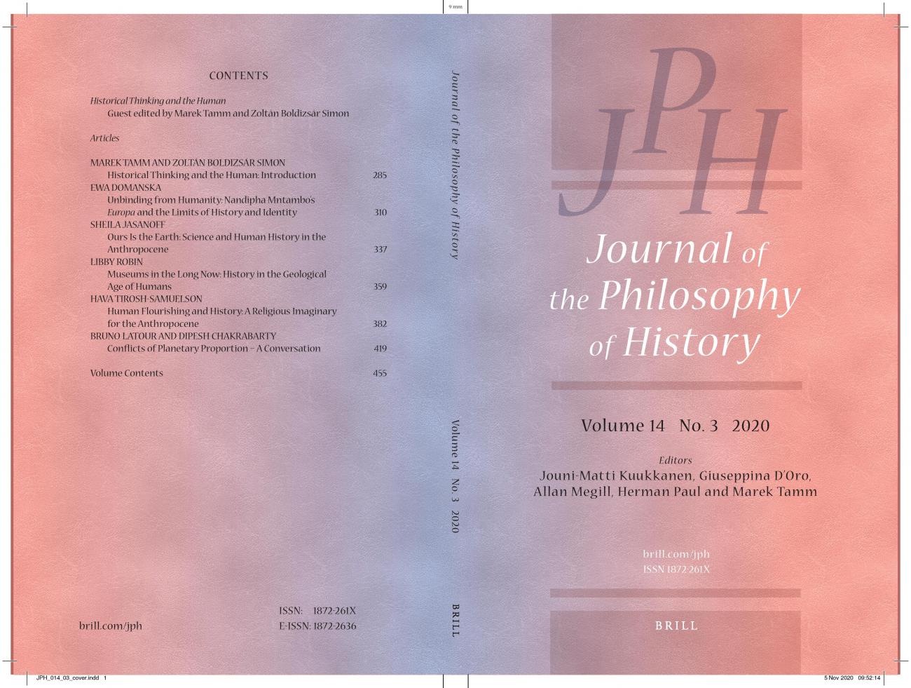Tallinna Ülikooli kultuuriajaloo professor Marek Tamm koostas kahasse Bielefeldi ülikooli ajaloofilosoofi Zoltán Boldizsár Simoniga ajakirja Journal of the Philosophy of History teemanumbri, mis kannab pealkirja “Ajalooline mõtlemine ja inimene” (Historical Thinking and the Human). Novembri lõpus ilmunud ajakirjanumbri eesmärk on pakkuda uusi valdkonnaüleseid vaatenurki ajaloolisele mõtlemisele tänapäeva kiirete muutuste ajastul. Konkreetsemalt on fookuses küsimused, kuidas mõjutavad suured keskkonnaprobleemid ja kiire tehnoloogiline areng senist arusaama inimesest, tema piiridest ja rollist, ja kuidas uued inimkontseptsioonid avaldavad mõju ajaloo mõtestamisele.